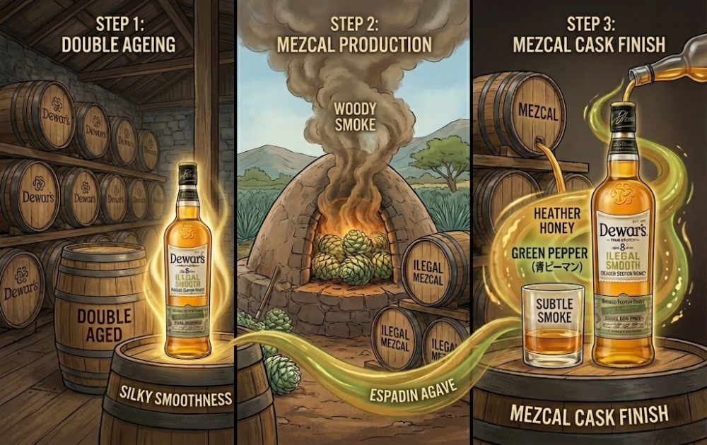 いよいよデュワーズ イリーガルスムースの製造工程を深掘りします。どのようにしてスコッチとメスカルが融合したのか、科学的に解説!