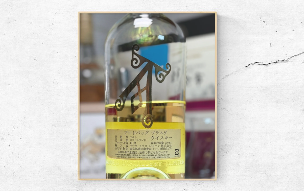 アードベッグといえば、無骨なダークグリーンのボトルが象徴的。しかしブラスダは、その「軽やかさ」を視覚的に伝えるために、あえて透明なクリアボトルを採用しました。