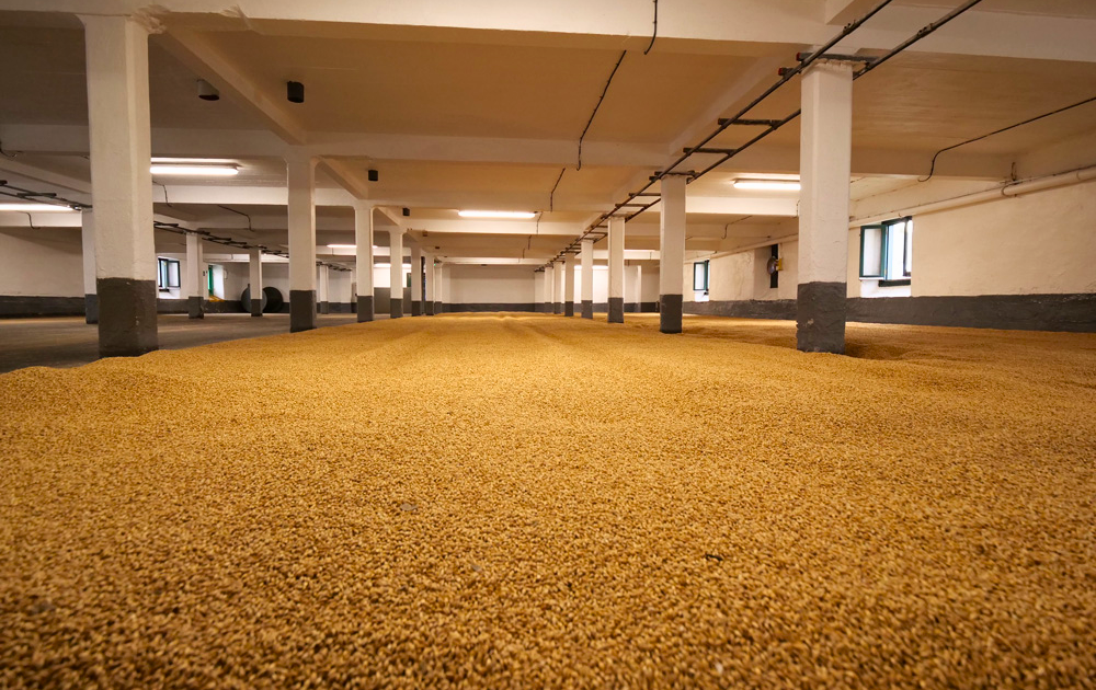 大麦の発芽と、それを止める為の大切な工程である「フロアモルティング」。ラフロイグでは使用する麦芽の15%を自社製残りの85%をポートエレン(精麦工場)に委託しているそうです。
