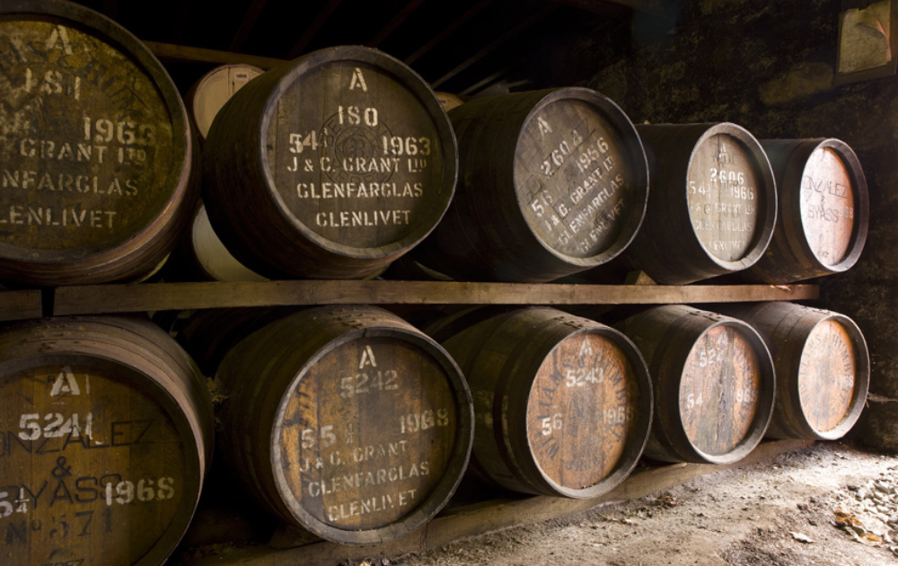 一般的な蒸留所では年間2〜5%程度蒸発(エンジェルズシェア)しますが、グレンファークラスの環境では年間約0.3%という驚異的に低い蒸発率を実現しています。湿度が比較的高いため、アルコール度数の低下が緩やかで、60%という高い度数を維持したまま8〜10年以上熟成させることが可能になります。