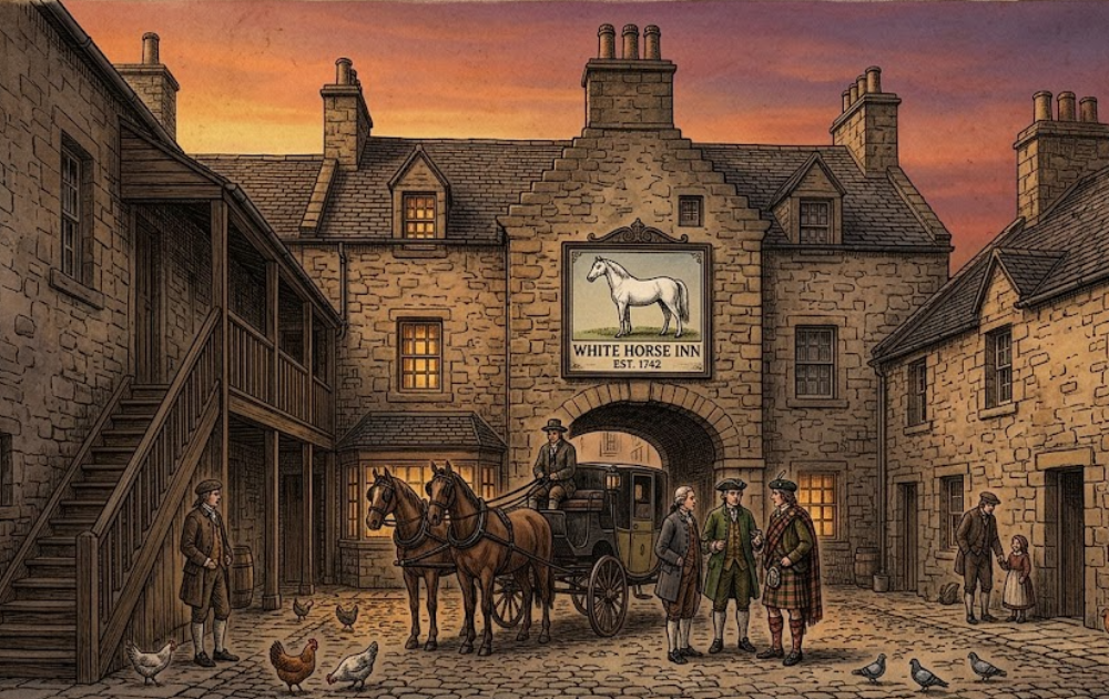 ホワイトホースの歴史は1890年、創業者ピーター・マッキーによって幕を開けます。ブランド名の由来は1742年創業のエディンバラの老舗宿屋「ホワイトホース・セラー」。かつてエディンバラとロンドンを結ぶ乗合馬車の出発点として栄えたこの宿では、長旅に備える旅人たちに質の高いウイスキーが振る舞われていました。